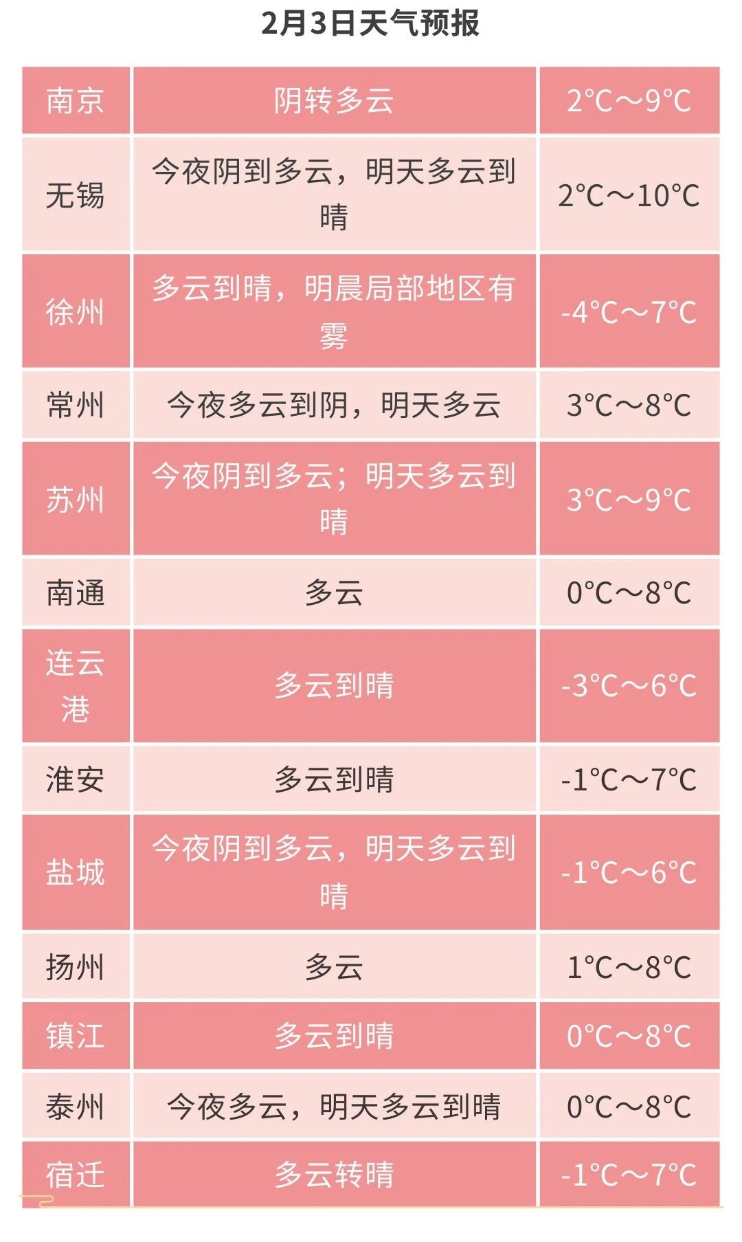 3、今天江苏雨水停歇,气温再次跌回近期谷底,午后两点各城市温度只有14到17度,体感阴冷 今天夜里到明天,全省多云到阴,伴有东到东北风4级左右。