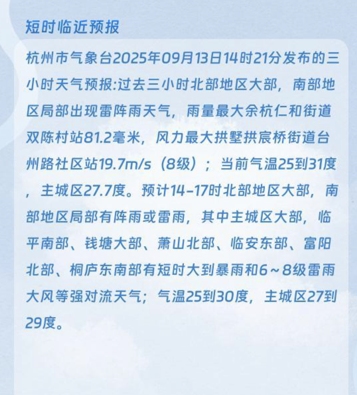 浙江富阳天气预报今日阵雨