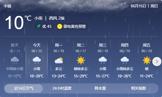 温度变化未来15天,丰宁坝上草原的气温将有所波动,但整体维持在较为适宜的范围内,建议根据具体天气预报适时增减衣物天气状况期间可能出现多云晴天或小雨等天气状况,请密切关注天气预报,合理安排出行计划风力风向风力大小和风向也可能有所变化,对户外活动有一定影响,需提前做好准备一周详细天气预报可通过围观天气等平台查询。