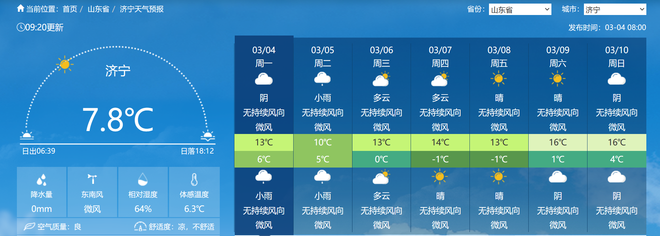 为你提供快速准确的济宁微山一周天气预报,未来15天的天气预报和气象趋势预测,主要指标包括每天最高气温最低气温天气状况风向等。